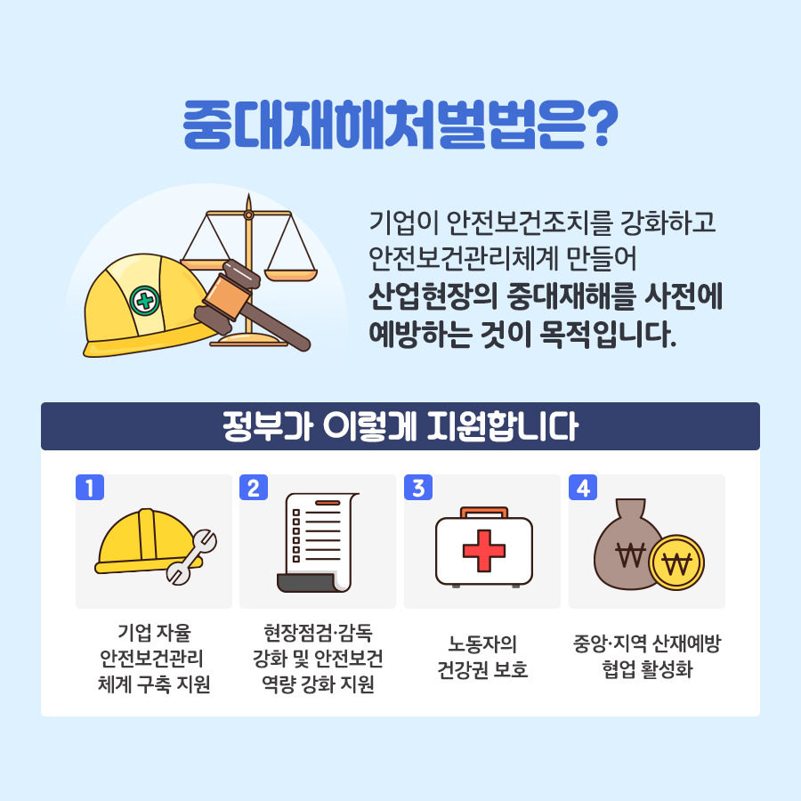 2025년 새정부는 이러한 현실을 반영하여 보다 유연하고 실질적인 법 개정을 추진하고 있습니다. 이재명정부는 “실제 산업현장에서 작동하는 법”을 만들겠다는 방향을 천명하며, 형식적 책임 부과보다는 예방 중심의 실행 가능한 조항으로 개편하고자 합니다.
